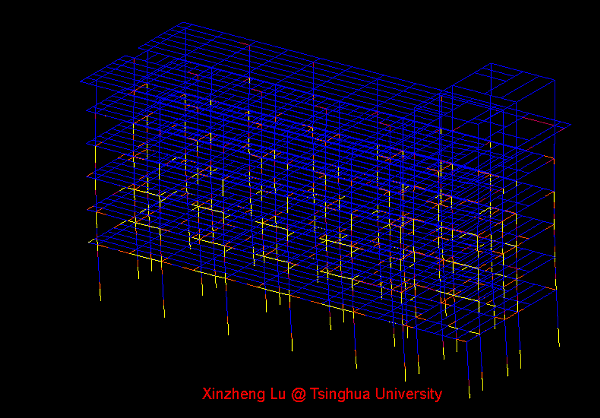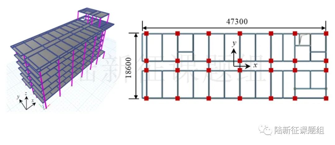 2 對典型中國建筑物的破壞能力分析這次地震已經(jīng)給日本當(dāng)?shù)卦斐闪司薮髠?,那按照我國?guī)范建設(shè)的建筑物,是否能夠抵御類似ISK002這樣的強(qiáng)烈地面運(yùn)動呢?于是把該地震記錄輸入到我們課題組此前積累的建筑結(jié)構(gòu)模型中分析了一下。(1)鋼框架結(jié)構(gòu)電子院和中建西南院共同設(shè)計(jì)了一個(gè)鋼框架結(jié)構(gòu),為一座6層的辦公樓(附加1層出屋面屋頂),首層與屋頂層高5.0 m,其余層層高3.6 m。設(shè)防烈度為8度,場地類別為II類,結(jié)構(gòu)一階周期約為2.2s(圖4)。