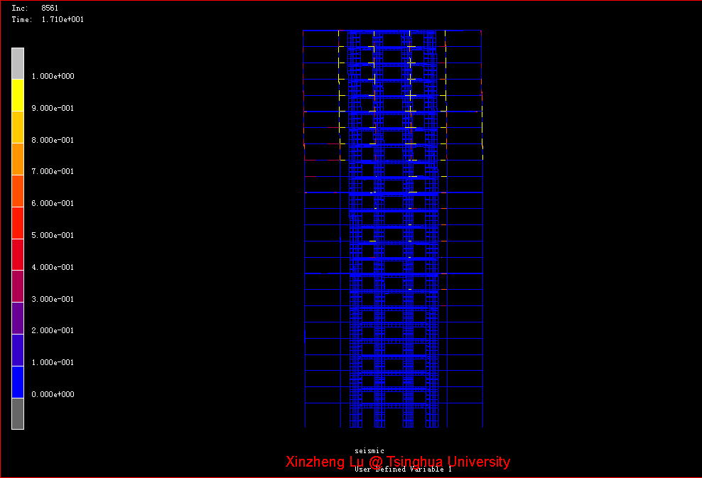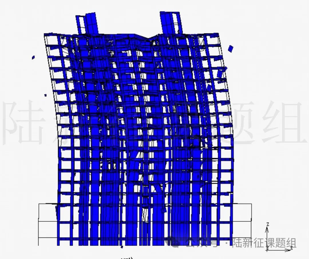 我們將ISK002臺站地震動記錄輸入該框架-核心筒結(jié)構(gòu),得到結(jié)構(gòu)的倒塌過程如圖11所示。
