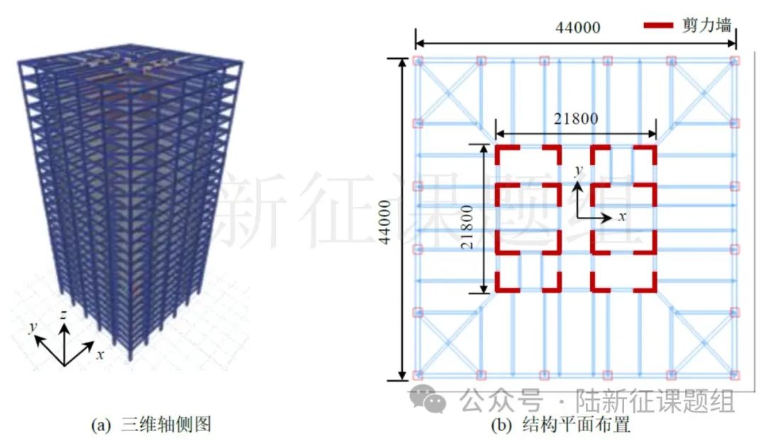 (4) 混凝土框架-核心筒結(jié)構(gòu)北京院、建研院曾經(jīng)設(shè)計(jì)了一個(gè)24層混凝土框架-核心筒,設(shè)防烈度為8度,場地類別為III類,抗震分組為第一組,結(jié)構(gòu)一階周期約為2.3s(圖10)。