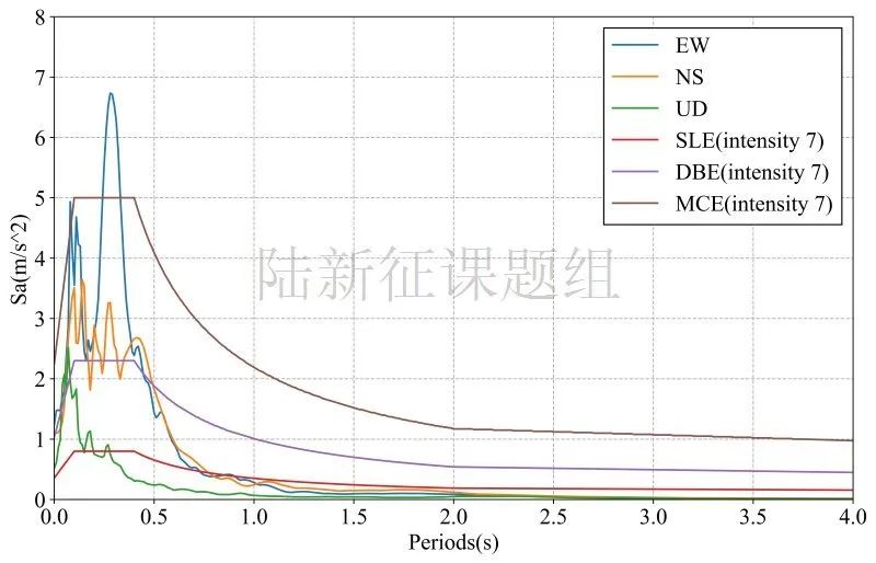 圖3 FXBS臺(tái)站典型記錄反應(yīng)譜