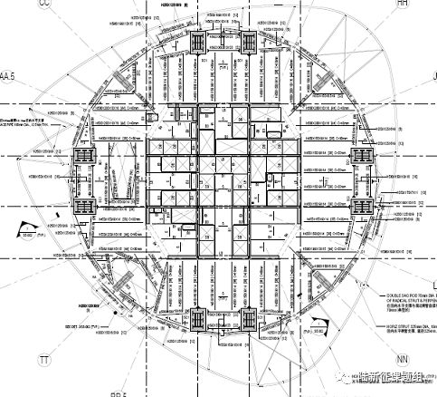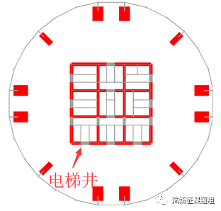 我想在未來上海中心的使用過程中,這個(gè)鋼筋混凝土筒大概是不會(huì)再變化的了。所以我們認(rèn)為電影發(fā)生時(shí)的電梯筒和現(xiàn)在的電梯筒一樣。當(dāng)然,為了更加真實(shí),我們找到了此前課題組建立的上海中心的詳細(xì)結(jié)構(gòu)模型,進(jìn)一步考慮外框架以及伸臂桁架等構(gòu)件對(duì)電梯筒的增強(qiáng)作用。