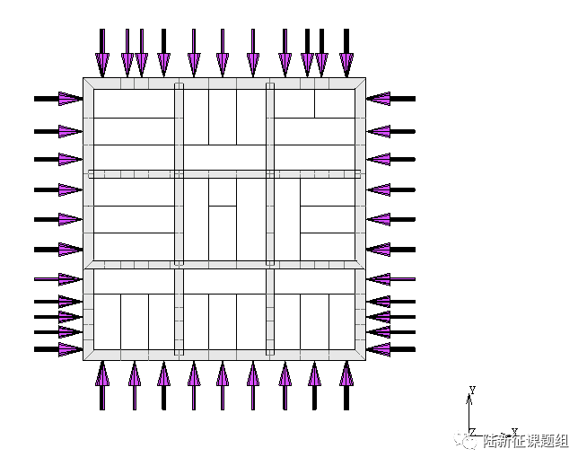 我們把水壓力加載在電梯筒外壁(圖4),看看計(jì)算結(jié)果如何。