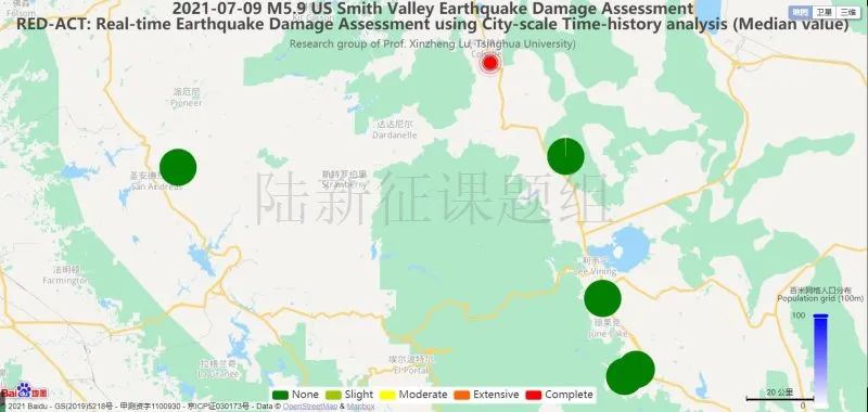 圖4 20210708美國(guó)內(nèi)華達(dá)州5.9級(jí)地震不同臺(tái)站地震記錄破壞力分布圖