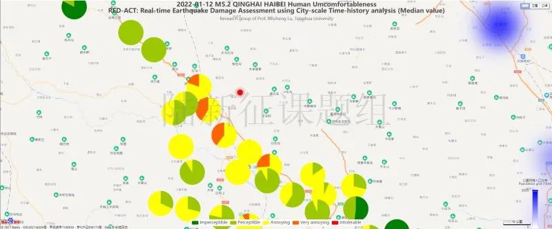 圖5 20220112青海海北州門源縣5.2級(jí)地震不同臺(tái)站地震記錄人員加速度感受分布圖