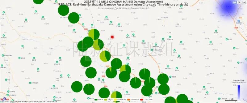 圖4 20220112青海海北州門源縣5.2級(jí)地震不同臺(tái)站地震記錄破壞力分布圖