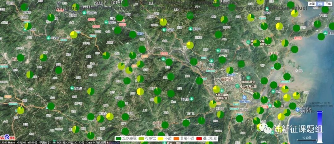 (深綠色代表“難以感覺(jué)”、淡綠色代表“可感覺(jué)”、黃色代表“不適”、橙色代表“非常不適”、紅色代表“難以忍受”)