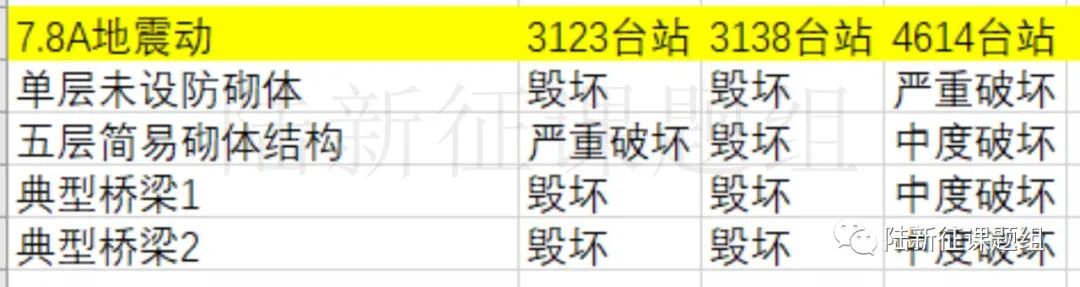 表1第一次7.8級(jí)地震典型建筑和橋梁分析結(jié)果