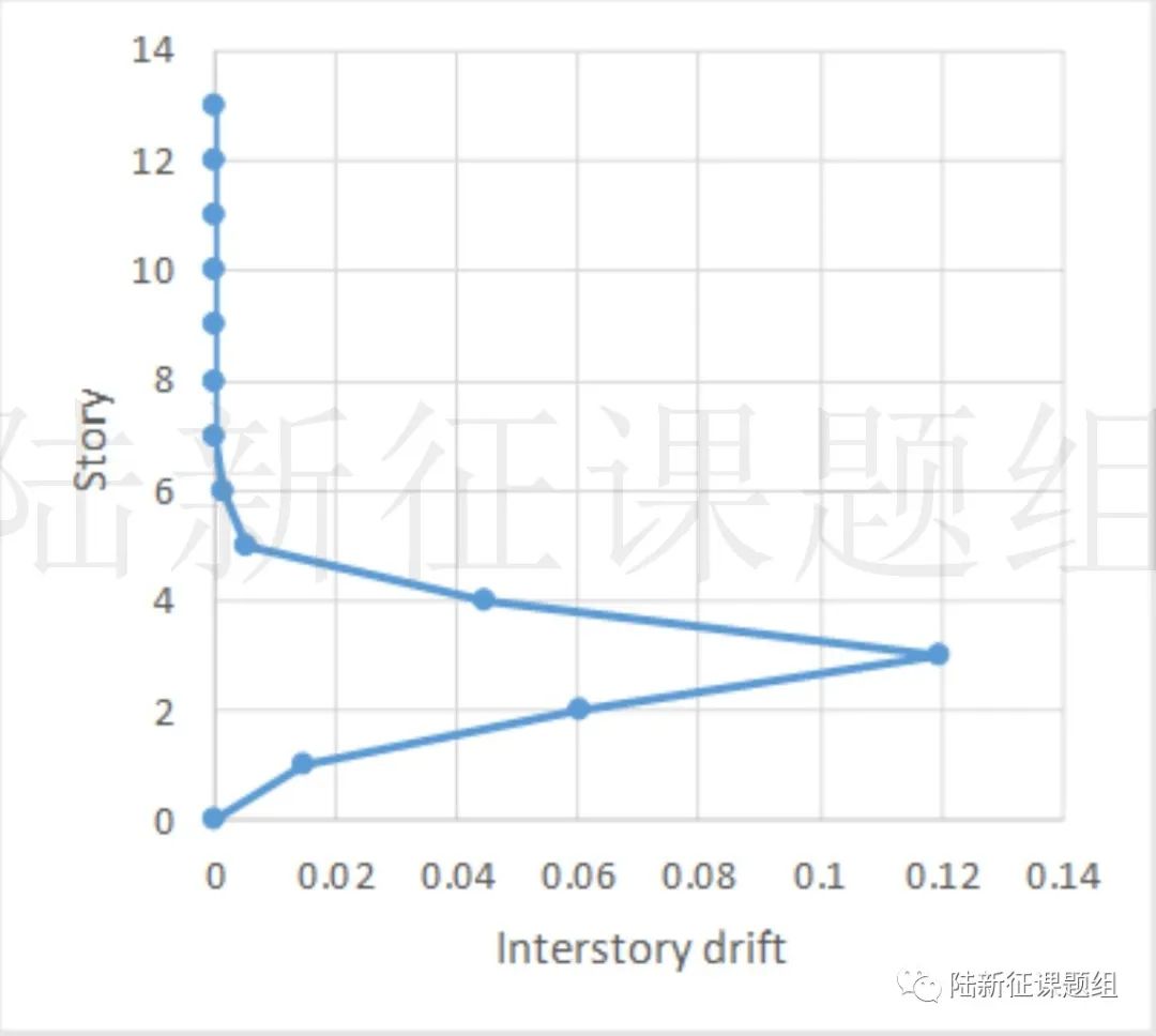 首先看看單體建筑的破壞情況,我們分析了3個(gè)土耳其多/高層鋼筋混凝土框架的模型(分別為2層、5層、13層)在3123臺(tái)站記錄下的響應(yīng),結(jié)果不出預(yù)料,3個(gè)框架都非常干脆的垮了(圖3)。所以,土耳其的建筑看來是很難抵御本次地震震中附近的強(qiáng)烈地面運(yùn)動(dòng)的。