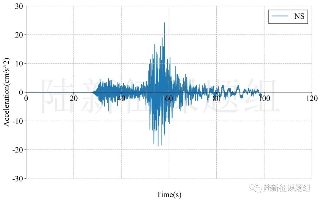 選取圖8所示朱伯龍等開(kāi)展的五層簡(jiǎn)易砌體結(jié)構(gòu)足尺試驗(yàn)?zāi)P停斎氲湫团_(tái)站記錄,分析結(jié)果表明該結(jié)構(gòu)將處于完好狀態(tài)。(朱伯龍等,上海五層砌塊試驗(yàn)樓抗震能力分析,同濟(jì)大學(xué)學(xué)報(bào),1981,4,7-14.)